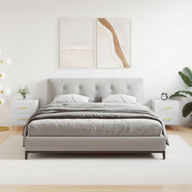 Introduce an air of modern charm to your interior with these bedside cabinets! Durable material: The engineered wood is of exceptional quality with smooth surface and also features strength, stability and resistance to moisture. Spacious storage: The bedside cabinet has drawers, providing spacious storage space to keep your books, multimedia appliances and other items within reach.Displaying function: You can also place your favourite photos, decorations or flowers on top of the side cabinet to enrich your life. Metal feet: The metal feet add a calm style to your interior while ensuring stability.